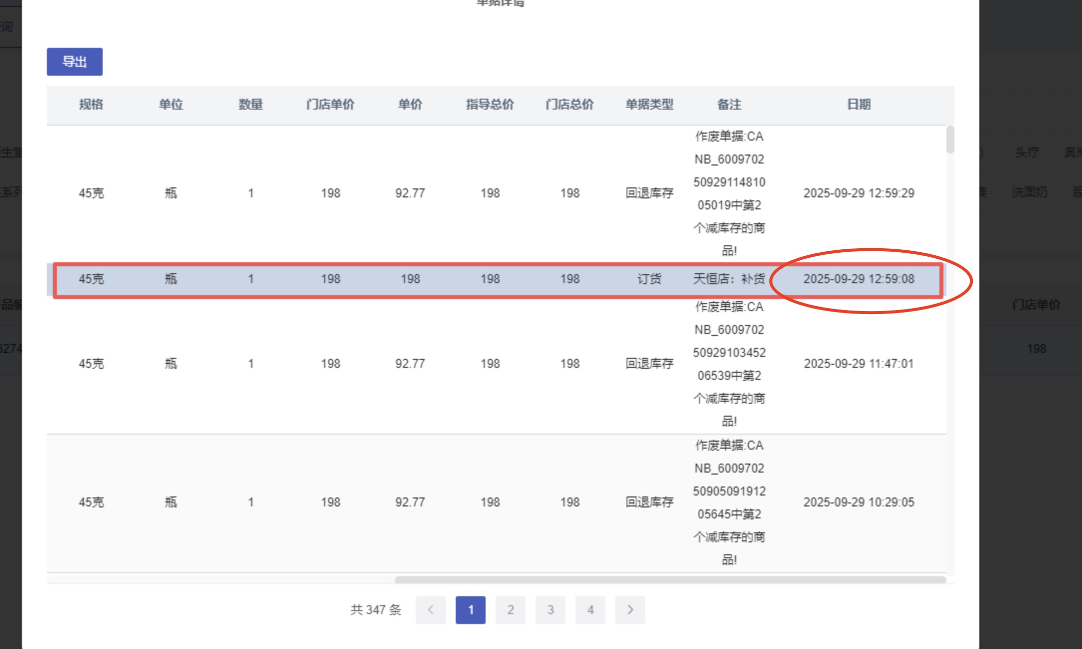 描述:库存查询-明细-单据类型为【订货】的明细,日期中显示的时间调整为该订货单收货时的时间